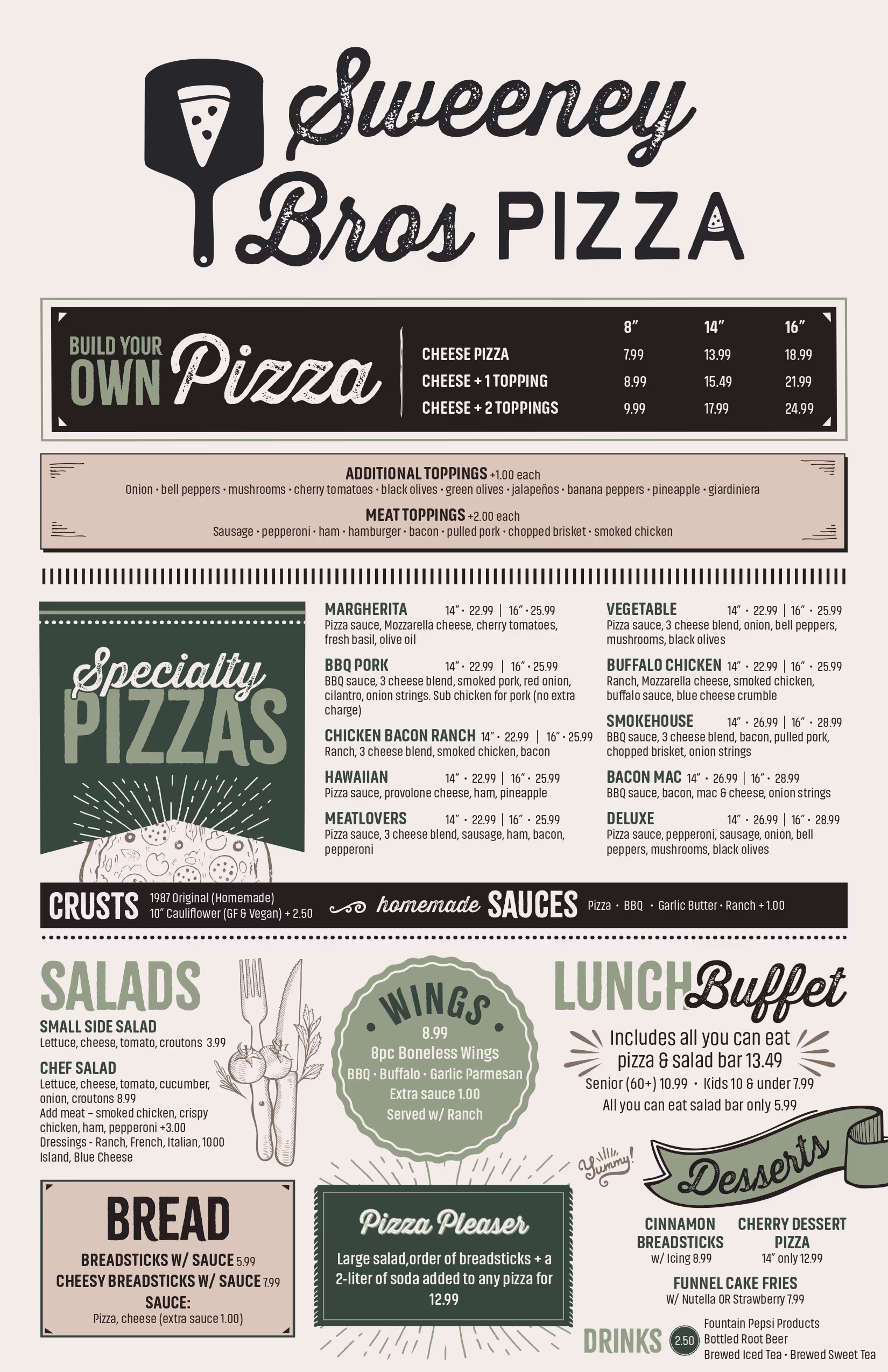 Jake and Erin are not only business partners but also proud parents of two young boys. They hope their children will one day share their passion for the food industry. Their dedication to family and their craft is reflected in Sweeney Bros Pizza, a name that honors their family's legacy—named after their two sons, the "Sweeney brothers."